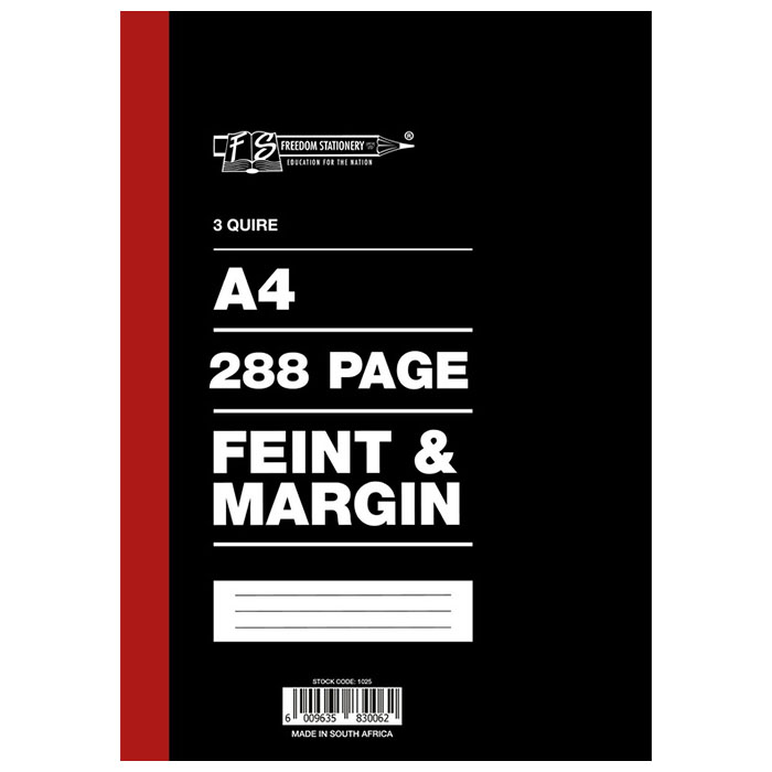 A4 3 Quire 288pg Feint and Margin Hardcover Book
