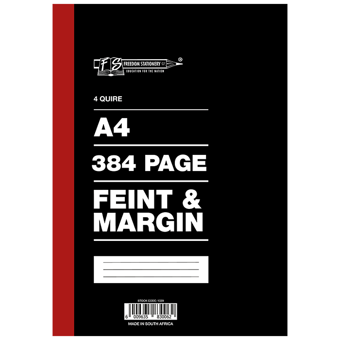 A4 4 Quire 384pg Feint and Margin Hardcover Book